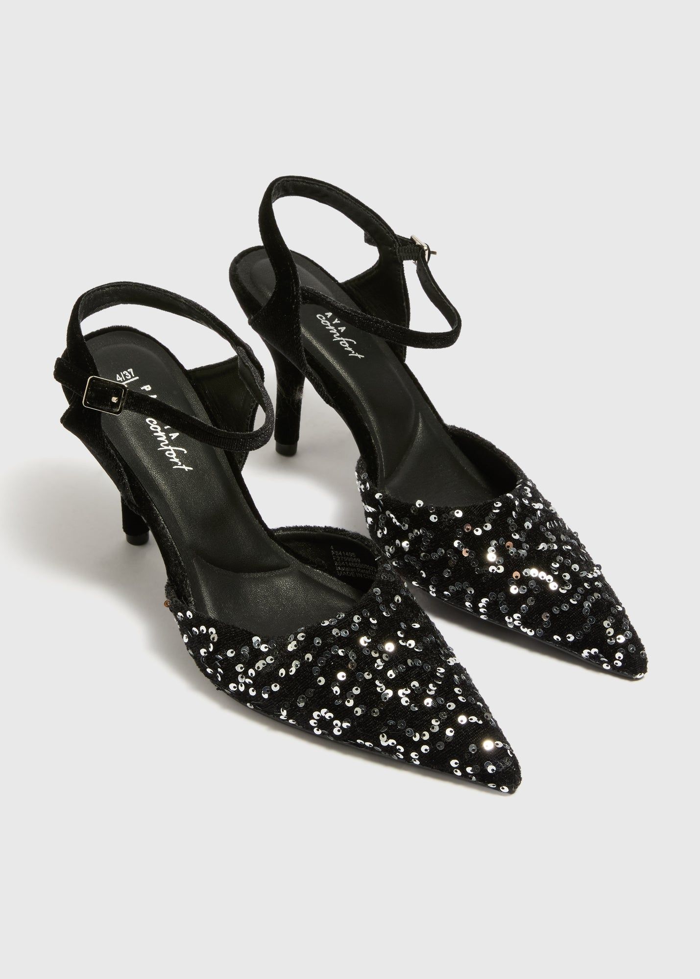The Black Sequin Strappy Court Heels add just the right amount of sparkle, making them ideal for Christmas nights, parties, and special occasions.